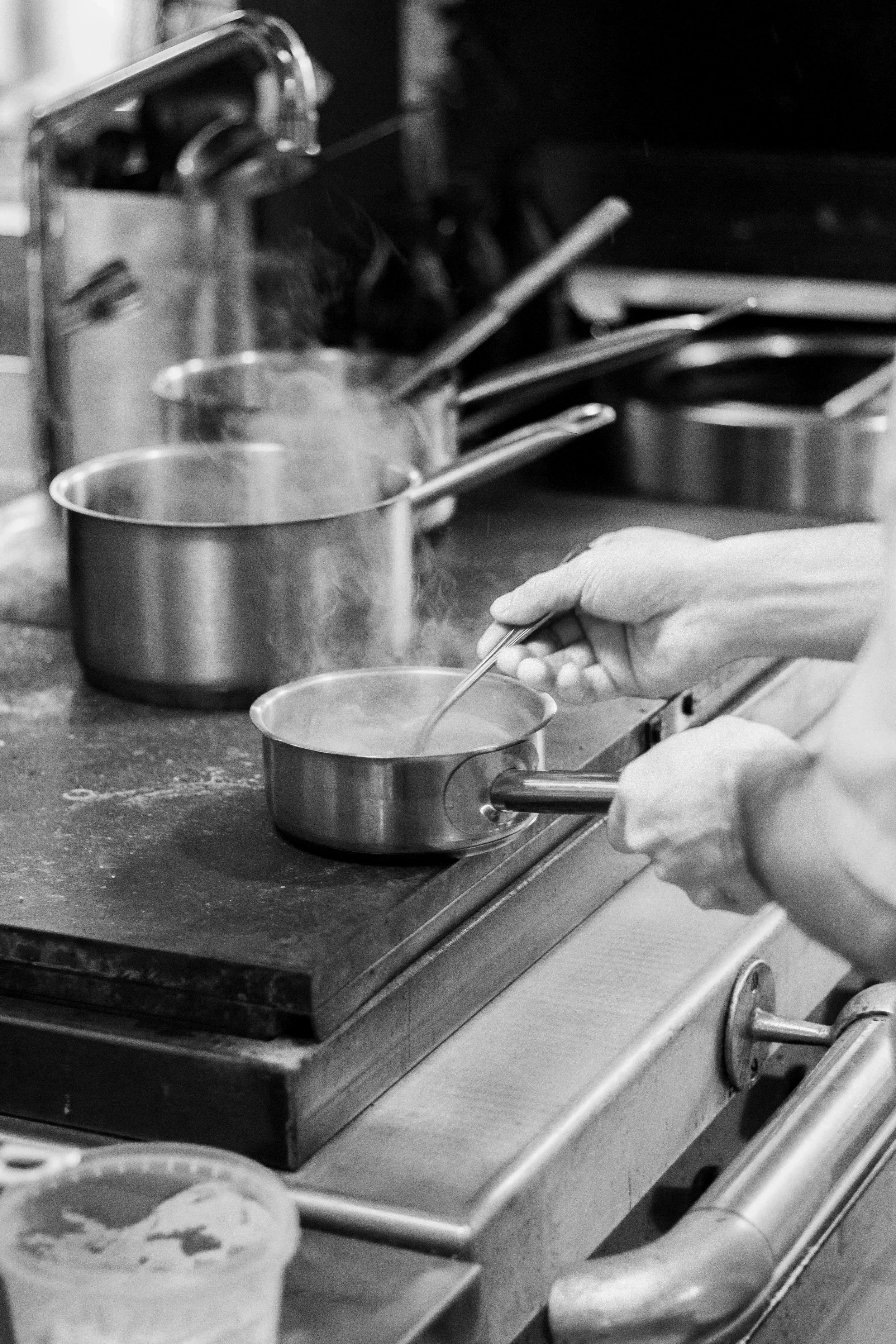 We cook in your kitchen or deliver fully prepared — depending on what your space allows. Serving 100 to 150 people, with menus that rotate, seasonal ingredients that make sense, and nothing that looks like it came from a factory.
